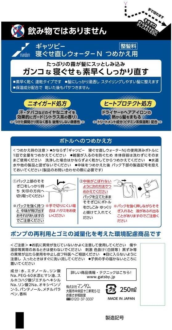 ギャツビー 寝ぐせ直しウォーター つめかえ用 250ml