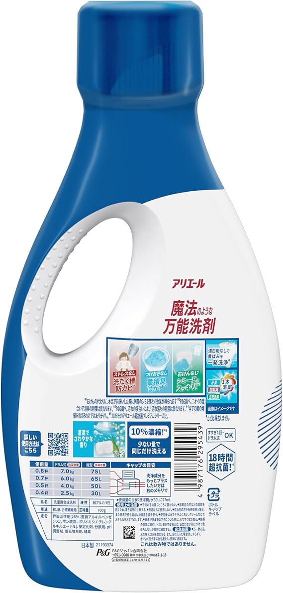 ※1…カビは除去しません※2…P&G調べ。ニオイの度合いで消臭の程度は異なります。※3…石けんの代わりに、本品で前洗いした際に同等のシミを落とす効果が得られます※4…P&G調べ。汚れの度合いにより、汚れ落ちの程度は異なります。※5…全ての菌の増殖を抑えるわけではありません。※6…2023年のアリエール超抗菌プレミアムシリーズ比。