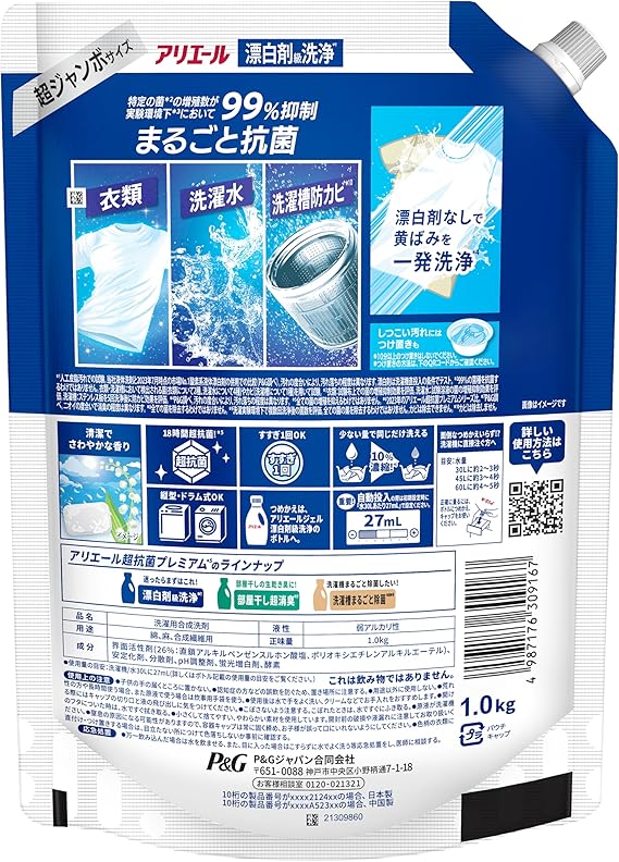 *5 全ての菌の増殖を抑えるわけではありません。 *6 2023年のアリエール超抗菌プレミアムシリーズ比。