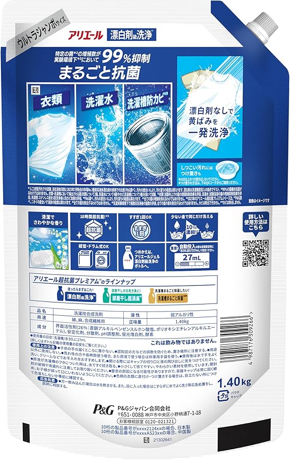 重要!自動投入の際は初期設定時に「水30Lあたり27mL」で設定ください。使用量の目安:洗濯機/水30Lに27mL(詳しくはボトル記載の使用量の目安をご覧ください。)開ける際にはキャップの切り口と液の飛び出しに気をつけてください。色柄の衣類に直付け・つけ置きする場合は、目立たない所につけて色落ちしないか事前に確認する。