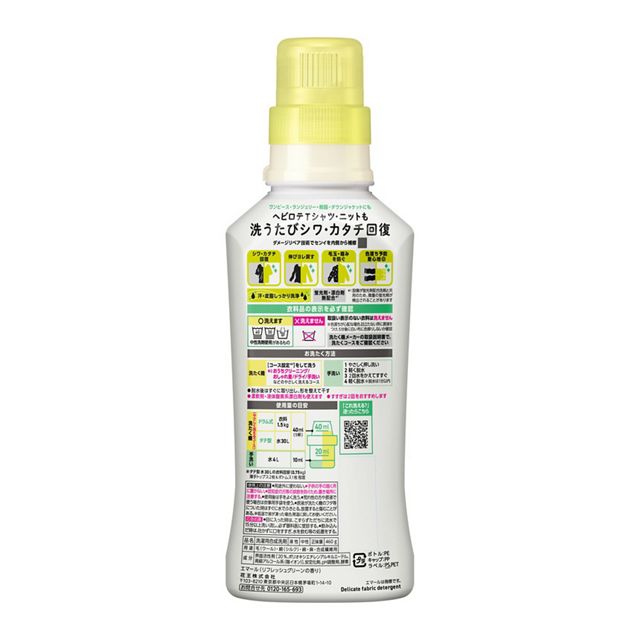 "ハリ感チャージ成分2倍配合!ヘビロテTシャツ・ニットも洗うたびシワ・カタチ回復!お気に入り服がキレイに長く着られる、洗たく用洗剤(おしゃれ着用)。