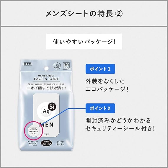 肌にやさしい使い心地でガッツリ拭ける! 顔のテカリもすっきりケア。アロエエキス配合(保湿)。汗のニオイのもとニオイ菌まで拭き消す! 全身の皮脂臭・加齢臭・ストレス臭まで気にならない。シーバムケア(皮脂吸着)成分配合。スタイリッシュシトラスの香り。