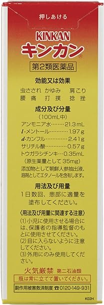 キンカンは有効成分が複合的に作用して、すばやく患部の熱を奪い去り、局所刺激を与えることにより、かゆみや痛みの伝わりを抑制し、虫さされ、かゆみ、肩こり、腰痛、打撲、捻挫に対して優れた効果を発揮します。