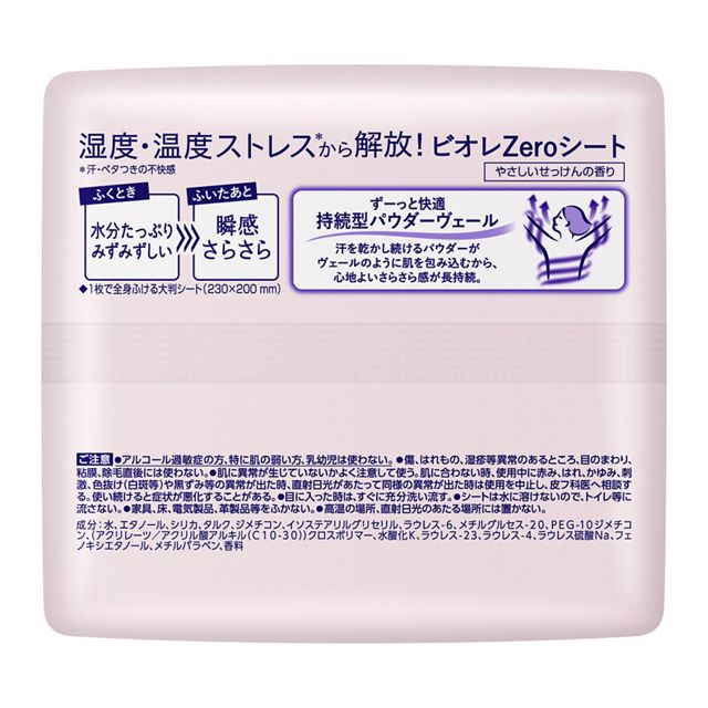 汗を乾かし続けるパウダーがヴェールのように肌を包み込むから、心地よいさらさら感が長持続。1枚で全身ふける大判シート(230×200mm)。やさしいせっけんの香り。*汗・ベタつきの不快感