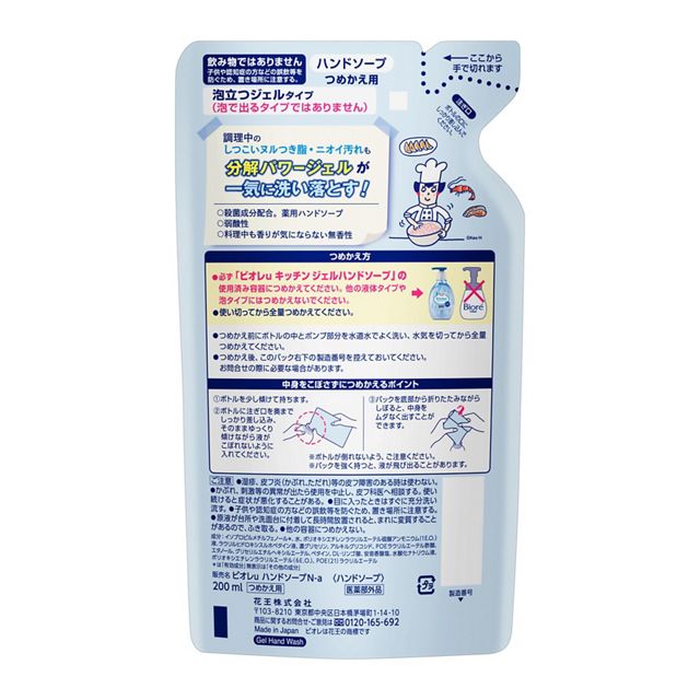 泡立つジェルタイプ。調理中の手に付いたひき肉のヌルつき脂・生魚のニオイ汚れも、分解パワージェルで一気に洗い落とします!