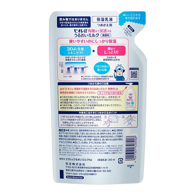 必ず「ビオレu 角層まで浸透するうるおいミルク 無香料」の使用済み容器につめかえてください。