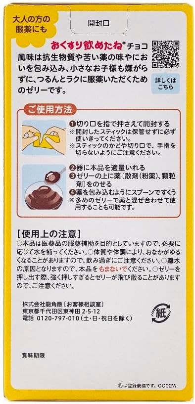 ●コップなどの容器にゼリーをいれ、薬を乗せて、薬<散剤(粉薬)・顆粒剤>を包み込むようにティースプーンですくって使用します。 多めのゼリーと混ぜ合わせてご使用することもできます。