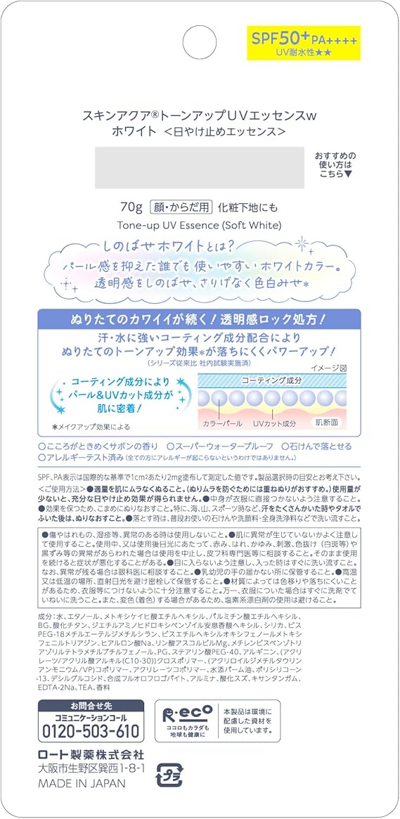 「スキンアクア トーンアップUVエッセンス ホワイト」は、UVカットしながら、さりげなく色白みせ※1できる顔・からだ用日やけ止め。どんなパーソナルカラーでも使いやすいホワイトカラーが新登場。