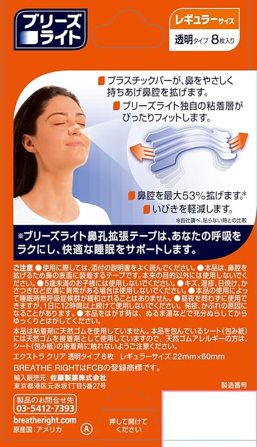 ・本品は、鼻腔を拡げるため鼻の表面に装着するテープです。