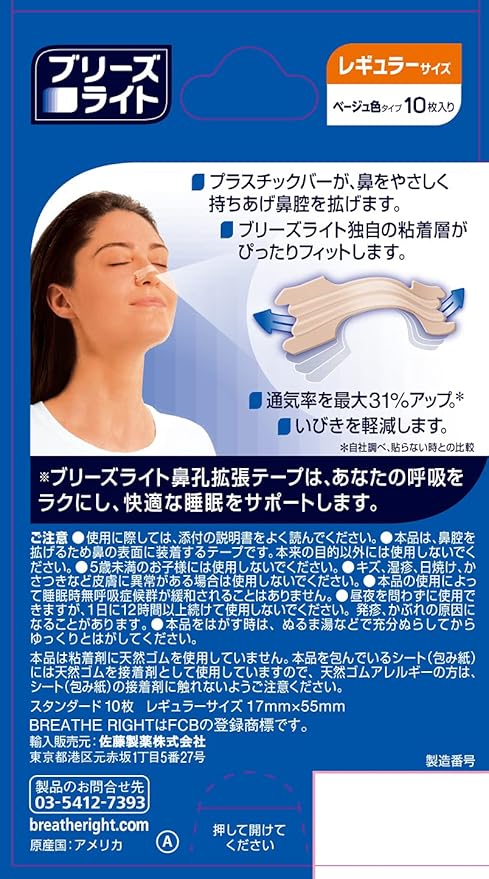 ・本品は、鼻腔を広げるため鼻の表面に装着するテープです。