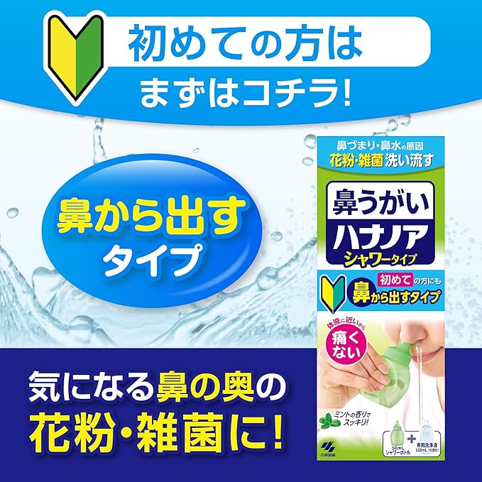 ●鼻の奥までしっかり洗える!たっぷりの洗浄液を反対の鼻から出すことで、鼻の奥に付着した花粉や雑菌をしっかり洗い流すことができます