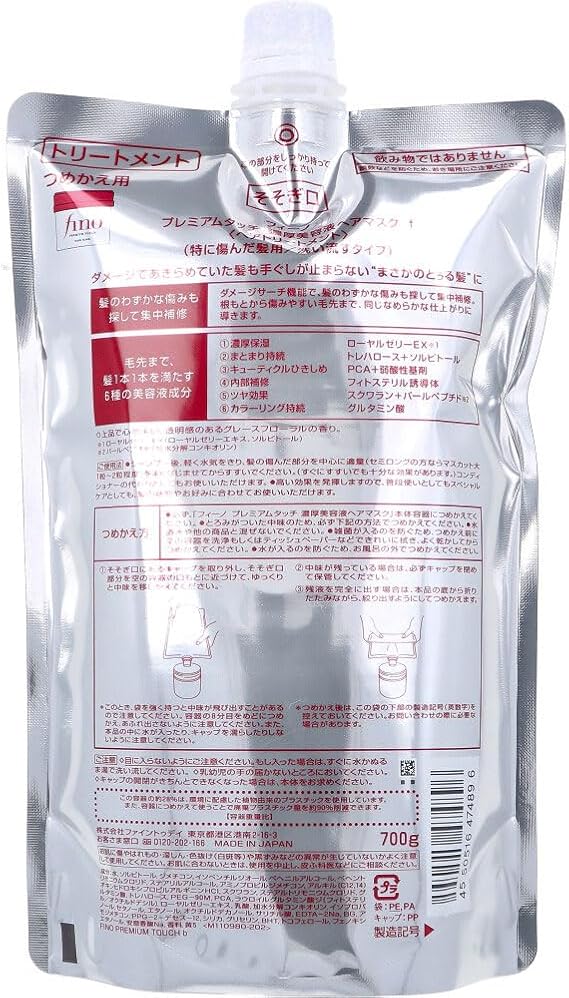 ●必ず、「フィーノ プレミアムタッチ 濃厚美容液ヘアマスク f」本体容器につめかえてください。