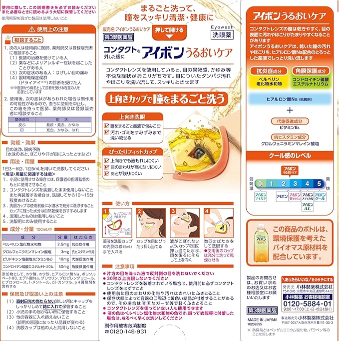 アイボンうるおいケアは、乾いた瞳の汚れやほこりを、ヒアルロン酸Na配合のとろっとした薬液でしっとり洗い流します
