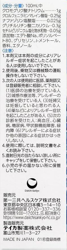 添加物:エデト酸Na、ポリソルベート80、グリセリン、l-メントール、香料、