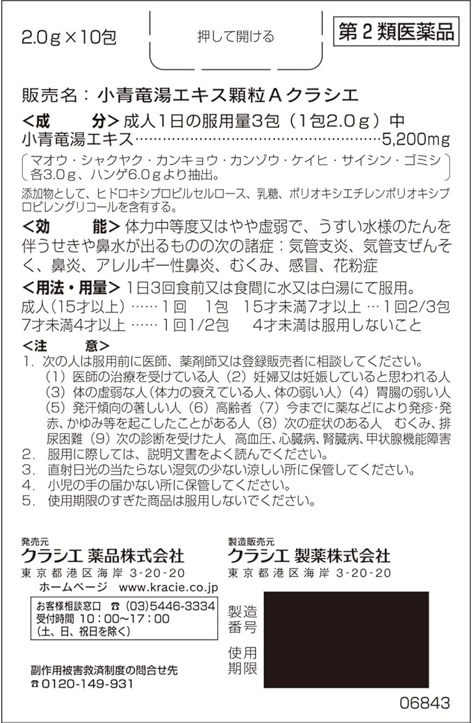 小青竜湯エキス(マオウ・シャクヤク・カンキョウ・カンゾウ・ケイヒ・サイシン・