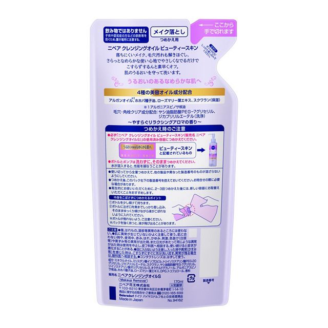 ●必ず「ニベア クレンジングオイル ビューティースキン(販売名 ニベアクレンジングオイルS)」の使用済み容器につめかえてください。