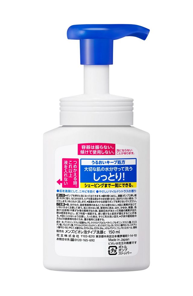 ●顔を軽くぬらし、適量(ポンプ2押し程度)を手に取り、なじませます。ヒゲを剃る時はそのまま剃ります。(泡がたりない時は、つけたします。)あとはよく流します。