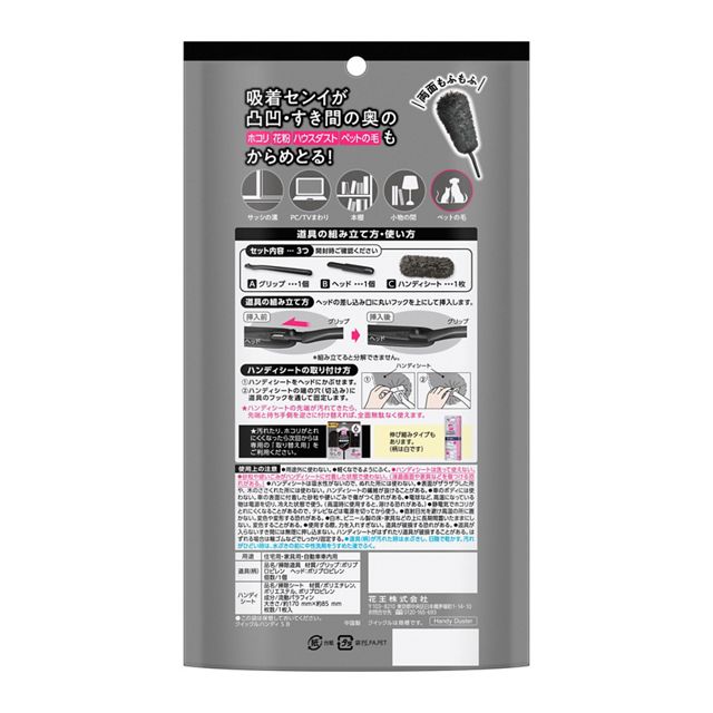 吸着センイが凸凹・すき間の奥のホコリ・花粉・ハウスダスト・ペットの毛もからめとる!