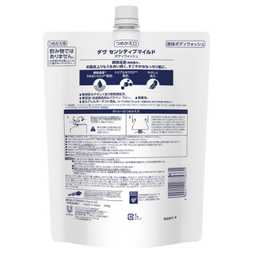 ●他の製品とは混ぜず、必ず、「ダヴ ボディウォッシュ センシティブマイルド」の使用済みボトルにつめかえてください。