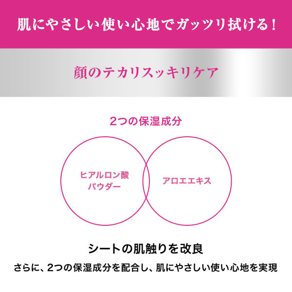 肌にやさしい使い心地でガッツリ拭ける。顔のテカリもすっきりケア。